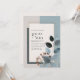 Set a chic, refined tone for your celebration with this minimalist dusty blue charcoal leaf gold frame invitation! We love how this design achieves sophisticated balance, defining the text area with a sleek metallic gold line frame that casts a subtle shadow for depth. The background is built from calming, layered geometric blocks in slate blue and pale beige, creating a crisp, contemporary backdrop. This structure is beautifully complemented by a stylised botanical branch in the corner, featuring bold, deep charcoal leaves and soft dusty blue accents that ground the design with an organic touch. This is the ideal stationery for a clean, structured, or urban minimalist wedding. You can effortlessly use this gorgeous invitation to share your ceremony details, to outline your reception schedule, to detail your elegant dress code, or to make your travel plans clear. The versatile design is also suitable for a high-end architectural firm announcement, a stylish boutique brand launch, a sophisticated milestone birthday, or a modern corporate event.