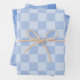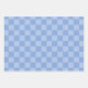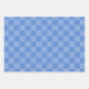 The sample features different shades of blue from pastel to medium on three different wrapping paper sheets.