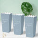Delight wedding guests with a surprise midnight snack. This lovely dusty blue wedding favour popcorn box features couple names in a contemporary set of white fonts, alongside elegant and modern floral outlines. This item forms part of a full wedding suite which includes matching stationary items.