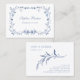 These beautiful, dusty blue and white business cards feature a vintage blue watercolor floral frame with lovely botanical leaves and flowers, and stylish calligraphy along with classic text. The frame surrounds your contact information, on a simple white background. These card are especially perfect for wedding coordinators or bridal consultants, antique or vintage sales dealers, and lovers of all things girly and romantic.
