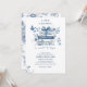Set against a soft dusty blue background, this baby shower invite blends classic floral motifs with storybook-inspired elements, making it ideal for a literary baby shower, storybook baby shower, or a refined blue and white baby shower theme. Whether you're hosting a boy baby shower, a gender-neutral baby shower, or an event with a vintage or French country style, this design offers a beautiful blend of elegance and warmth.