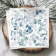 Dusty Blue Christmas Napkin with Watercolor Leaves