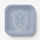 Dusty Blue Classic Floral Crest Monogram Wedding Paper Plate