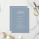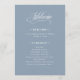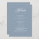 These elegant, dusty blue wedding welcome programs feature classic and luxe white calligraphy for a timeless, fancy look.