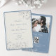 Celebrate timeless romance with this dusty blue and ivory wedding invitation, designed for couples who love tradition with a modern touch. Featuring delicate silver floral line art, an elegant serif and script font combo, and a subtle vintage border, this invitation blends classic elegance with rustic-chic charm. The reverse side includes a custom photo and a QR code RSVP for seamless guest response. Perfect for spring, summer, or fall weddings, this design offers a stylish yet heartfelt way to invite loved ones to your special day.