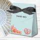 Celebrate love and colour with this personalised Mexican wedding favour box, perfect for a fiesta wedding full of joy and vibrant details. This design features colourful pink and orange flowers, festive bunting, and floral patterned maracas, all beautifully arranged against a soft, dusty blue background. A chic black ribbon bow adds the perfect finishing touch. Whether you're planning a traditional or modern Spanish celebration, this charming thank you favour box brings festive flair and elegance to your special day.