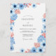 Evoke a charming, artistic atmosphere with this delightful design featuring painterly florals in dusty blue and coral hues. Delicate blooms and textured foliage create a whimsical yet elegant border. The combination offers a refreshing and vibrant feel for your special day.
