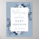 Dusty Blue Country Floral Baby Shower Welcome Sign