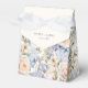 Elegant wedding favour box with a watercolor floral seamless pattern design in varying shades of dusty blue and cream.