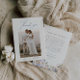 Show your gratitude to your family and friends with this elegant wedding thank you card. This card is customisable with a photo of the newlyweds on the front side and a beautiful watercolor floral border design with flowers in varying shades of dusty blue and cream on the reverse side.
