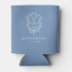 Dusty Blue Crest Modern Monogram Wedding Can Cooler