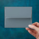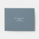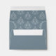Dusty Blue Damask R.S.V.P. return envelope, with blue damask pattern on the inside and a dusty blue colour on the outside.