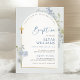 Dusty Blue Delphinium Floral Arched Boy Baptism Invitation
