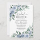Dusty Blue Elegant Floral Boho Rose Bridal Shower Invitation