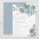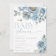 Dusty blue elegant floral roses boy baby shower invitation