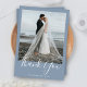 Dusty Blue Elegant Photo Wedding Thank You Card