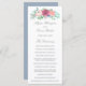 Romantic wedding program with a flower garland consisting of pastel pink and mauve roses. Your ceremony events are on the front and your wedding party is on the back over a dusty blue background. This floral design is great for a celebration in the spring.