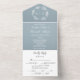 Dusty Blue, eucalyptus, elegant, rustic, modern folded marriage, Wedding all in one invitations. Trifold, budget set. You can personalised it with your own details.