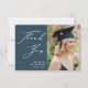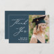 Dusty Blue Elegant Script Simple Photo Graduation Thank You Card