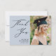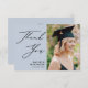 Dusty Blue Elegant Script Simple Photo Graduation Thank You Card