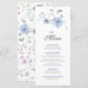 The front features beautiful floral accents and elegant typography, while the back is finished with a coordinating seamless floral pattern. Fully customizable—simply click "Personalize" to add your specific menu choices. Perfect for garden, spring, or whimsical fine-art weddings.