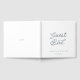 Elegant dusty blue wedding guest book featuring romantic calligraphy and refined serif typography. The minimalist design highlights the words “Guest Book” in graceful script, paired with the couple’s names, venue, and wedding date for a timeless and sophisticated look.
