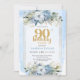 Dusty Blue Eucalyptus 90th Birthday Elegant Invite