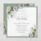 Modern, elegant square bridal shower invitation featuring lush grey green botanical leaves and eucalyptus, and bordered in pale eucalyptus blue grey green. Personalise your bridal shower details in soft off-black, accented with beautiful modern hand lettered calligraphy. The back of the card features the watercolor floral botanicals. Part of a co-ordinated suite. See full collection here: https://www.zazzle.com/collections/elegant_eucalyptus_green_botanical_bridal_shower-119330045467288535 contact designer for additional products. Copyright Elegant Invites, all rights reserved.