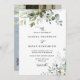 Please note: The elegant beautiful typography wording phrases of "kindly", "and", and "reception to follow" on the front of the invitation AND "details + kindly respond" on the back of the invitation along with the watercolor greenery foliage eucalyptus leaves arrangements and other graphic artwork elements like the lines and rectangle boxes cannot be edited, changed, moved, or deleted. They are fixed.