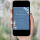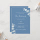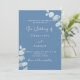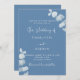 Dusty blue background, decorated with eucalyptus stems, sprigs. Personalise and andd your names and the details.