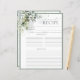Designed to accompany our matching Bridal Shower Recipe Binder, part of a matching Bridal Shower Invitation Suite, this pretty recipe card features lush grey green botanical leaves and eucalyptus, and bordered in pale eucalyptus blue grey green (carefully digitised) and pretty hand lettered script calligraphy. There are plenty of lines for the recipe, and the back matches the front, so each guest can give the bride two recipes. A margin has also been left on the page to accommodate the margin. CLICK HERE for the coordinating Recipe Binder: https://www.zazzle.com/collections/elegant_eucalyptus_green_botanical_bridal_shower-119330045467288535