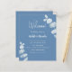 A modern, elegant, wedding program, timeline. Dusty blue background, decorated with eucalyptus, sprigs. Personalise and add your names and wedding details. If you have more text it's possible to reduce the line space and also add text on the back.