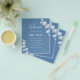 A modern, elegant, wedding program, timeline. Dusty blue background, decorated with eucalyptus, sprigs. Personalise and add your names and wedding details. If you have more text it's possible to reduce the line space and also add text on the back.