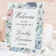 Dusty Blue Floral 100th Birthday Party Welcome Pedestal Sign