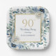 Dusty Blue Floral 90th Birthday Paper Plate