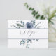 Dusty Blue Floral and Grey Wedding RSVP Invitation