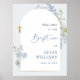 Dusty Blue Floral Arched Boy Baptism Welcome Sign