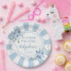 Dusty lue flowers, elegant watercolor floral baby boy shower paper plates, baby shower decor.