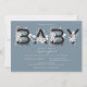 Dusty Blue Floral Baby Shower Invitation featuring the word "Baby" with a wild illustrated bouquet botanical, flowers, branches and other natural elements. Personalise with your baby shower information.