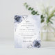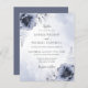 An elegant modern floral wedding invitation featuring dusty blue watercolor flowers with handwritten calligraphy.