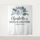 A large dusty blue floral bouquet creates a pretty backdrop for your bridal shower photographs. Three lines of text are available for you to personalise.