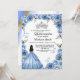 Dusty Blue Floral Butterfly Girl Quinceanera Invitation
