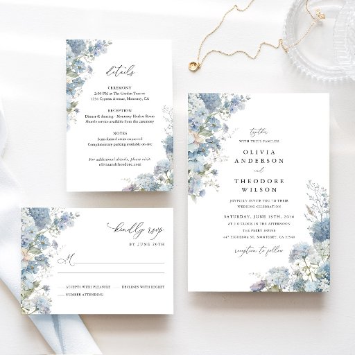 Dusty Blue Watercolor Floral Wedding SuiteDesigned by K Lily