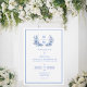 Dusty Blue Floral Crest Monogram Wedding Invitation