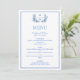 Dusty Blue Floral Crest Monogram Wedding Menu