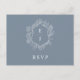 Dusty Blue Floral Crest Monogram Wedding RSVP Postcard