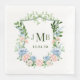 These paper dinner napkins are perfect for your engagement party, shower, rehearsal dinner or wedding. The crest with blush pink, dusty blue, and white watercolor roses on green foliage is stunning. And, your initials and party date/wedding date in 2 shades of coordinating green in a beautiful traditional yet modern font is the icing on the cake.