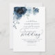 Dusty Blue Floral Dark Navy Pastel Boho Wedding Invitation
