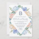 This dusty blue floral diamond monogram wedding invitation card is perfect for a spring or summer wedding. The dainty design features light blue peonies arranged with peach and cream flowers in a gorgeous diamond shaped wreath.
