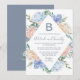 Dusty Blue Floral Diamond Monogram Wedding Invitation
